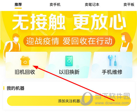 1、首先我们进入到APP主界面,在该界面点击“旧机回收”。