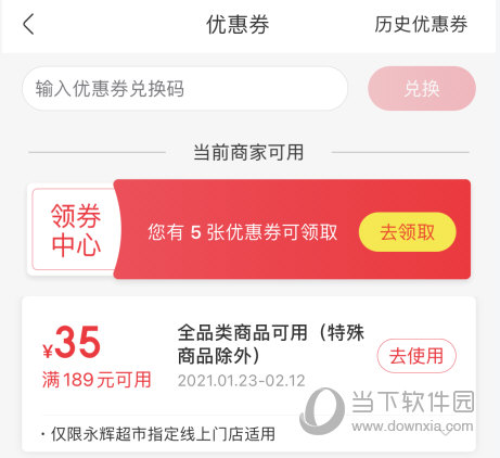 3、领取完成后我们可在优惠券管理界面进行查看。