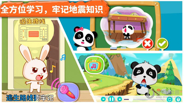 宝宝地震安全是一款独特新颖的地震安全儿童教育软件,宝宝地震安全pc版通过动画片、儿歌、知识问答、情境模拟游戏的方式,提高宝宝对地震的认识,宝宝地震安全情境模拟游戏设置在学校、家、街道等日常生活化场景中,并在这些场景中插入了医药包、书包、桌椅等道具。