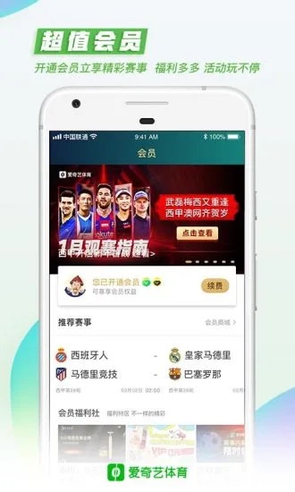 爱奇艺体育APP以超级体育IP、潮流运动IP和原创体育节目为核心,构建多维度内容生态体系,拥有西甲、欧洲国家联赛、2020欧洲杯、法网、温网等全球影响最大、受众最广的赛事内容,同时吸纳世界综合格斗赛事,为用户提供优质的赛事直播观看体验。