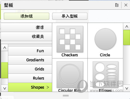 我们点击上方【查看】-【型板集合】打开菜单,在里面选择【圆形】。