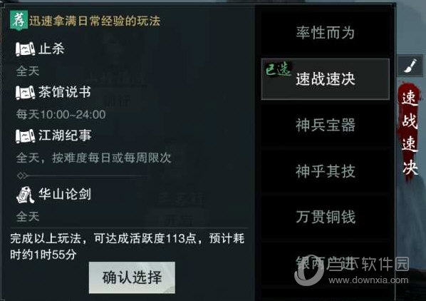 ④点开活动后的右侧有一个红底白字的 率性而为 系统为你推荐了各种选择的任务,如银两最多的玩法、铜币最多的玩法、PVP玩法、PVE玩法、可以挂机的玩法等一系列。