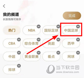 2、之后可以在“我的频道”功能中看到“中国足球”的选项,点击右边的编辑功能按钮,然后再删除“中国足球”即可屏蔽国内足球了。