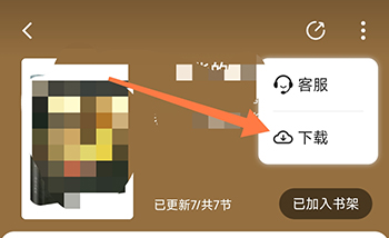 2、找到想要下载的书籍进入详情页面,点击右上角三个点按钮,弹出选框,点击下载;
