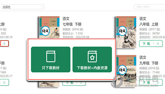 点击版本、学段、年级、学科,可筛选查看相应类别的数字教材。