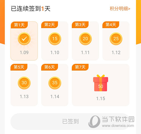 2、进入签到页面,软件就会自动进行签到,并获取相对应的积分。