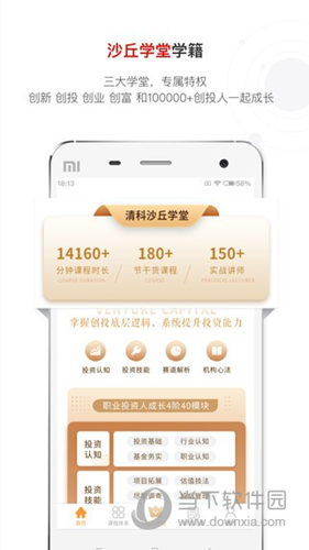 沙丘学堂是清科创业(1945.HK)旗下,专注于私募股权投资和创业领域,以“创新、创投、创业、创富”为核心理念,为新晋职业投资人、创业者提供包含VC/PE入行学习、认证考试、创业知识、融资技能等深度课程的综合互联网学堂。