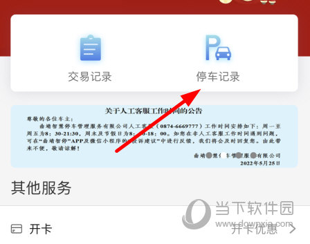 3、回到个人中心,点击“停车记录”,在其中即可进行查看。