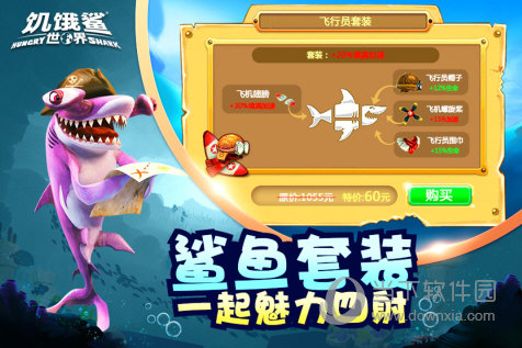 升级你的鲨鱼装上超酷的装备,咬合更用力、游的更迅猛变得更贪婪!每只蓄势待发的鲨鱼都需要、耳机、雨伞还有超炫的喷射背包!