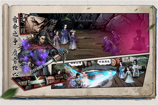 1、烟雨江湖全新的剧情类游戏玩法,2D武侠阿画风,细腻清晰的场景画面。