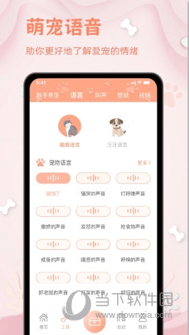 3、学习汪星人的语言,打开撩狗神器中心就能收听其中的狗叫声并学习语言;