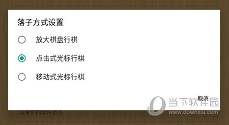 忘忧围棋支持放大走棋和光标走棋2中模式,同样是进入设置页面,在【落子方式设置】中即可进行设置,有三种模式给你选择,分别为放大棋盘行棋、点击式光标行棋、移动式光标行棋。