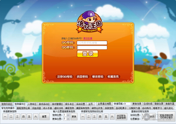2、宠物操作区:背包宠物智能操作、智能宠物仓库、回血回蓝、捕捉宠物、捕捉稀有宠物、更改储物仓出现宠物、宠物自动吃果子、自动炼丹、呱呱学习