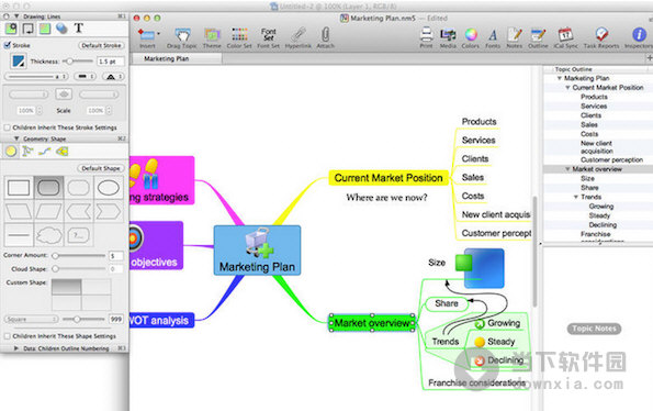 Novamind 是一款苹果Mac电脑专用的思维导图软件,它的亮点就在于功能丰富、设置人性化,用户可以将思维导图和PPT融合在一起,并且可以支持思维导图放映演示。
